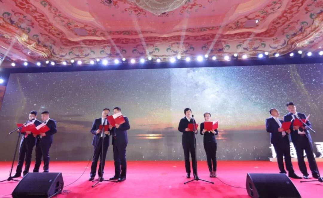 晚宴开始,买足球的软件app推荐集团行政总裁何海平先生、集团执行总裁张雁先生、集团副总裁汪贵华先生、集团总裁助理方谦先生,一同登台开启晚宴的祝酒仪式!