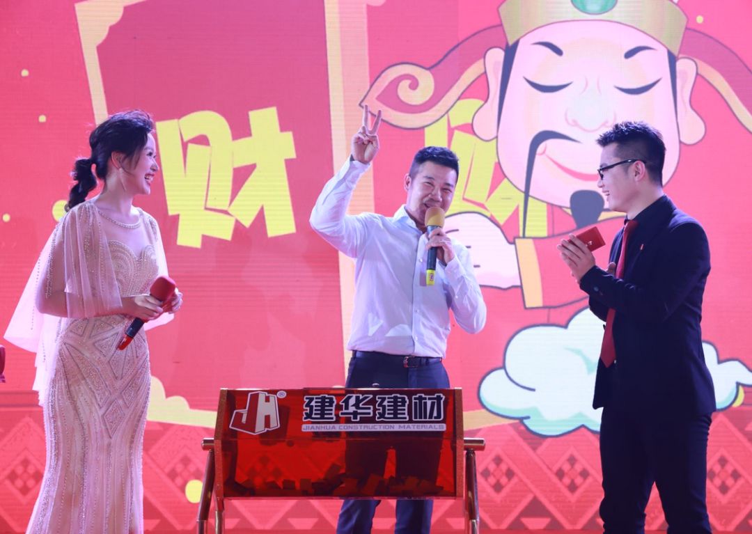铝镁合金拉杆箱、金猪吊坠、黄金手链、钻石项链,还有华为mate20 Pro顶配手机88台!更有由建华裕景泰贸易公司提供的人手一份的海鲜大礼包,丰厚的奖品,抽抽抽不停!快来看看现场的盛况吧!