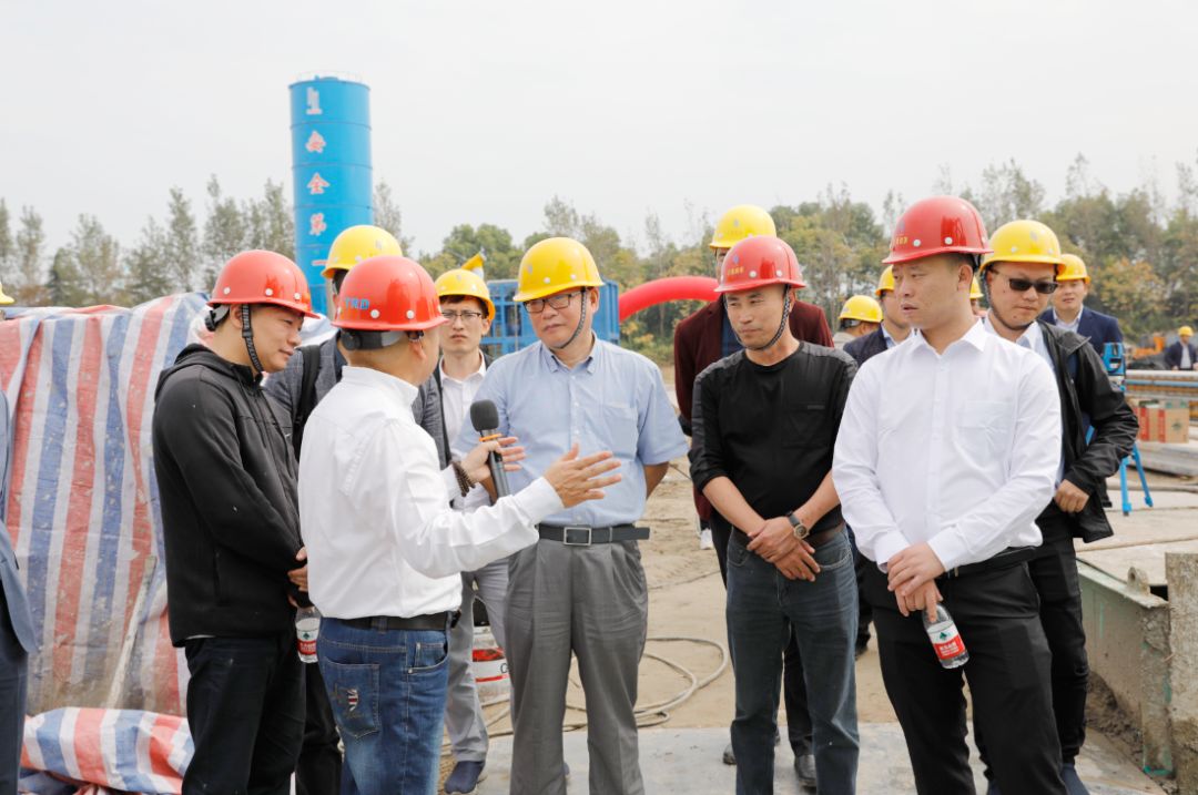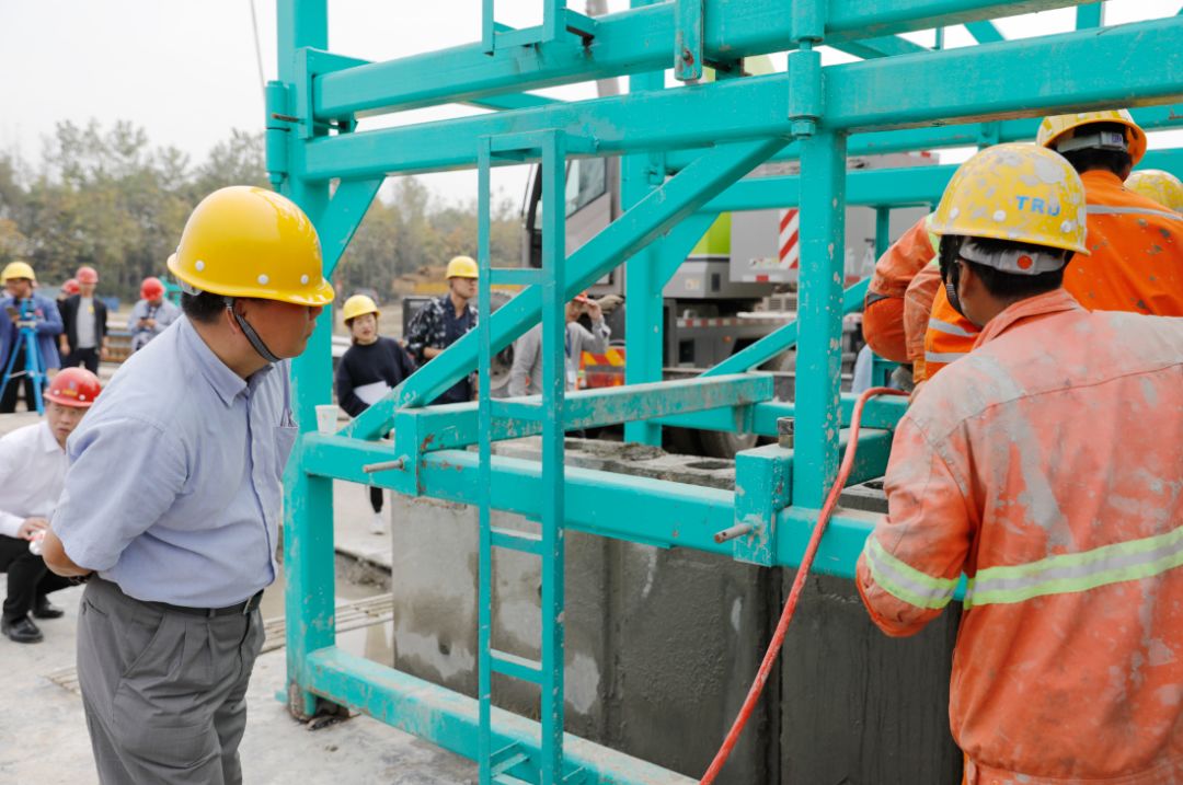 仪式正式开始前,与会嘉宾共赴浙江吉通研发试验基地参观了预应力混凝土离心板桩结合“渠式切割装配式地下连续墙”(简称TAD技术)施工的新型工法。TAD技术是指在连续施工的渠式切割水泥土连续墙中插入预制混凝土板材,板材之间以特定的接头相连,形成集挡土与截水于一体的复合结构。其受力性能和截水性能较传统的地下连续墙更为可靠,该工法将有效提升买足球的软件app推荐预应力混凝土离心板桩产品的施工效率,减少泥浆排放量,符合国家绿色低碳的发展理念。