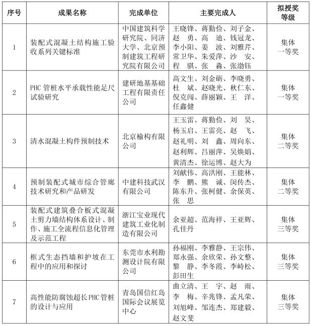 根据《“建华工程奖”章程》要求,2018年度“建华工程奖”的评选,经过申报、形式审查、专家评审以及“建华工程奖”奖励委员会审定等程序,拟授予集体一等奖2项、集体二等奖2项、集体三等奖3项。为了确保“公开、公正、公平”的原则,现将拟授奖名单予以公示。如有异议,请在公示期内,书面向“建华工程奖”奖励办公室提出。以单位名义的,应写明单位、联系人、联系电话,并加盖单位公章;以个人名义的,应署本人真实姓名、工作单位和联系电话。
