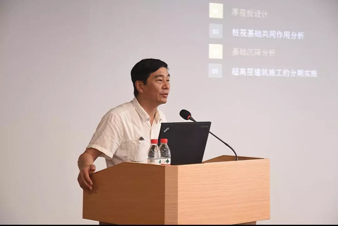 同济大学建筑设计研究院执行总工程师巢斯首先带来《地基基础设计经验分享》报告,作为参与“上海中心”设计规划的国内知名建筑工程师,巢斯结合“上海中心”的具体案例,从桩基设计、厚筏板设计、桩筏基础共同作用分析、基础沉降分析、超高层建筑施工的分期实施五个方面作详细分享,为与会设计师代表提供了大量值得借鉴的成功经验。