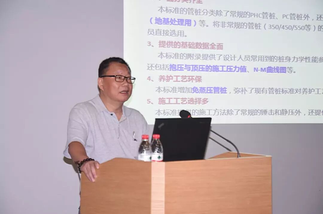 张雁从编制者的角度详细解读了《标准》的编制背景、主要特点、主要条款及说明等,并结合自身丰富的行业经验及买足球的软件app推荐实施的众多经典工程案例,对植入法沉桩和中掘沉桩法两种施工工法和超高强混凝土材料做了生动形象的介绍,帮助与会设计师代表对预制桩产品的应用标准有了更深入的了解。