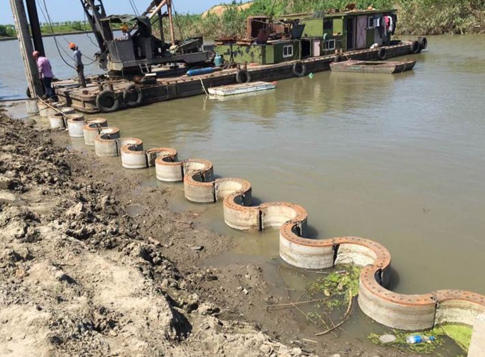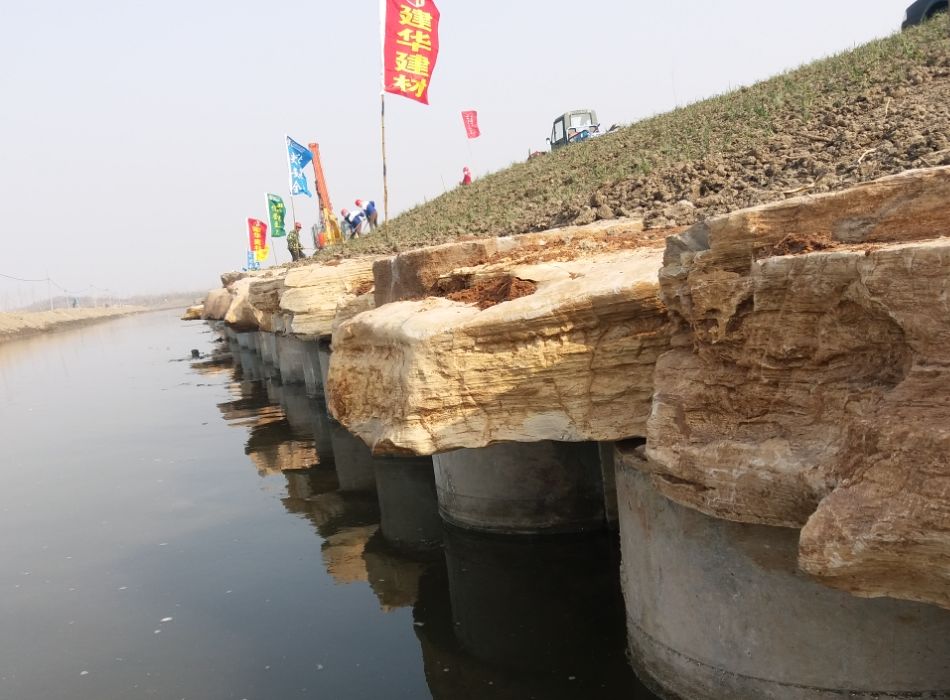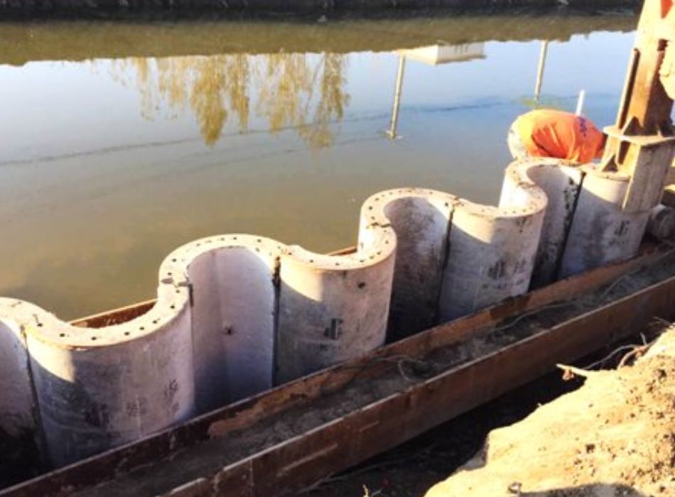 一种新型的预制护岸结构,主要适用于水利、市政、工业与民用建筑、港口、铁路、公路、桥梁等领域的边坡、护岸支护挡土。波浪桩采用工厂化预制,离心成型,高温养护成桩。混凝土采用防腐混凝土,耐久性能好,其抗氯离子、抗硫酸盐、抗冻、抗渗等性能均达到国标中强腐蚀环境下100年的要求。