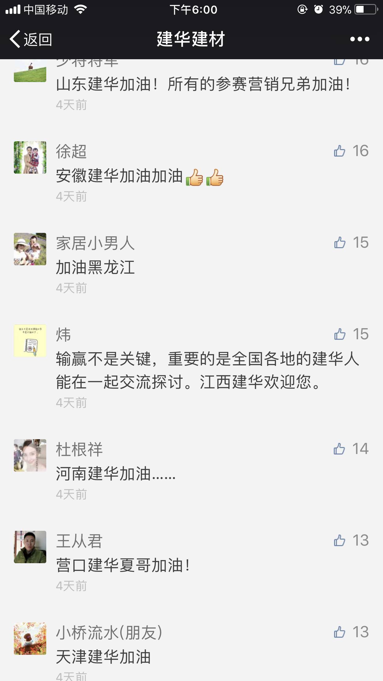 本次营销大比武从辩论预赛开始便得到全体营销人的热烈响应。前期通过微信发布的人气代表队评选活动共计得到了59000多人次的投票参与,最终黑龙江建华代表队、上海嘉兴建华代表队、福建建华代表队分别获得了票数前三,评委会也会在最终的评选结果中给予这三支代表队加分奖励。