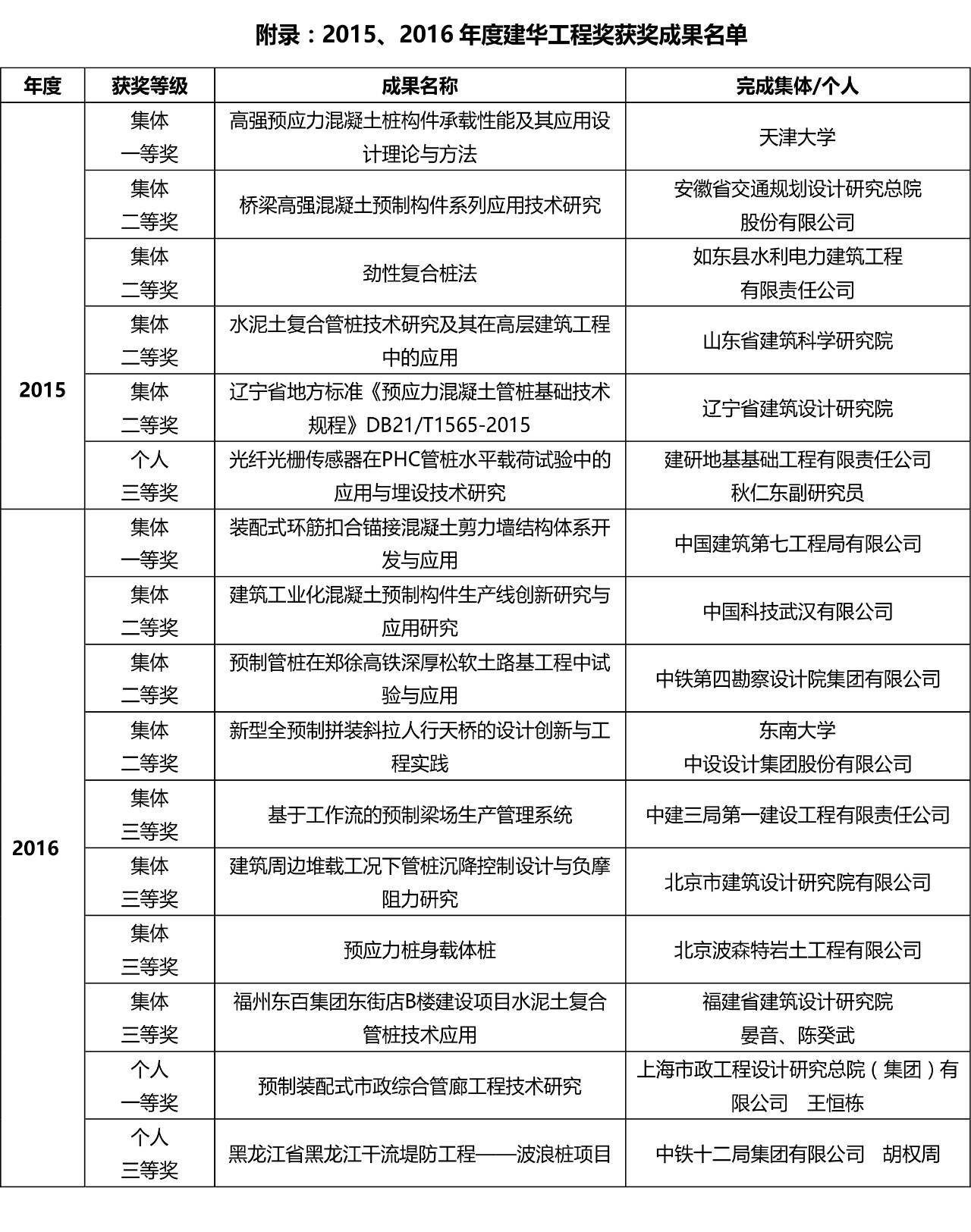 随着我国持续加大基础设施建设,不断对混凝土材料和工程技术创新提出更高要求,混凝土材料工业的发展已经进入到绿色化、部品化、高性能化、多功能化发展的新阶段,“建华工程奖”也随着行业发展不断寻求突破,在评奖成果中,已由原先主要的预制混凝土桩和桩基工程技术方面的创新成果扩大到预制混凝土构件方面的成果,这标志着“建华工程奖”自身的创新发展。