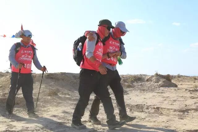 第一天28公里的征程即将接近尾声,各队戈友携手冲向终点。伴随着戈壁美丽的黄昏,终于抵达宿营大帐。
