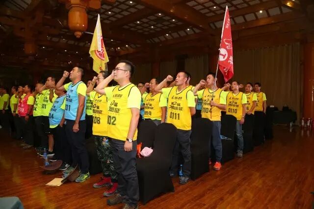 在专业教练的带领下,全体人员认真进行出征前的热身拉练,为挑战自我做好充分准备。