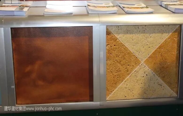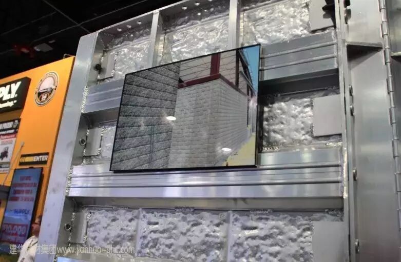 ▷展会上展出的墙体模具,其内有仿石材效果的纹理