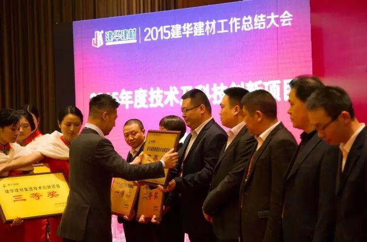 “改革正当时,建华再出发”,2014年建华提出向混凝土制品与技术综合服务商进行转型,2015年建华集团上下齐心协力再次出发,踏上了建华转型之路。改革创新、技术突破、质量管理为建华的转型之路披荆斩棘。会中,集团分别对在技术及科技创新、生产技术综合管理、工程应用创新方面表现突出的单位以及在工作中勤奋刻苦、爱岗敬业的56名劳动模范进行表彰。