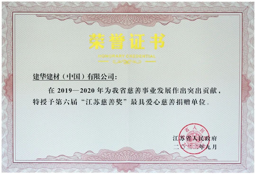 9月5日,江苏省政府召开第六届“江苏慈善奖”表彰大会,买足球的软件app推荐被省政府授予“江苏慈善奖”最具爱心慈善捐赠单位称号。这是江苏省公益慈善领域最高奖项,全省仅30家单位获此殊荣。