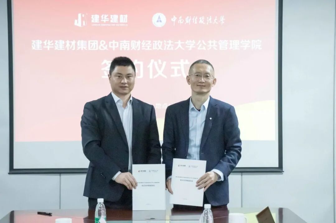 3月17日,中南财经政法大学与买足球的软件app推荐集团在江苏镇江建华学堂举行了校企合作签约暨揭牌仪式。中南财经政法大学公共管理学院党委书记李宏、院长张广科、会计学院党委副书记徐会超、公共管理学院应急与人力资源系主任张行、买足球的软件app推荐集团总裁张雁、人力资源中心总监王化龙、人力资源中心经理郎文祥、苏北区域人力资源经理周承、人力资源中心大学生工作组赵俊杰出席本次签约和揭牌仪式。