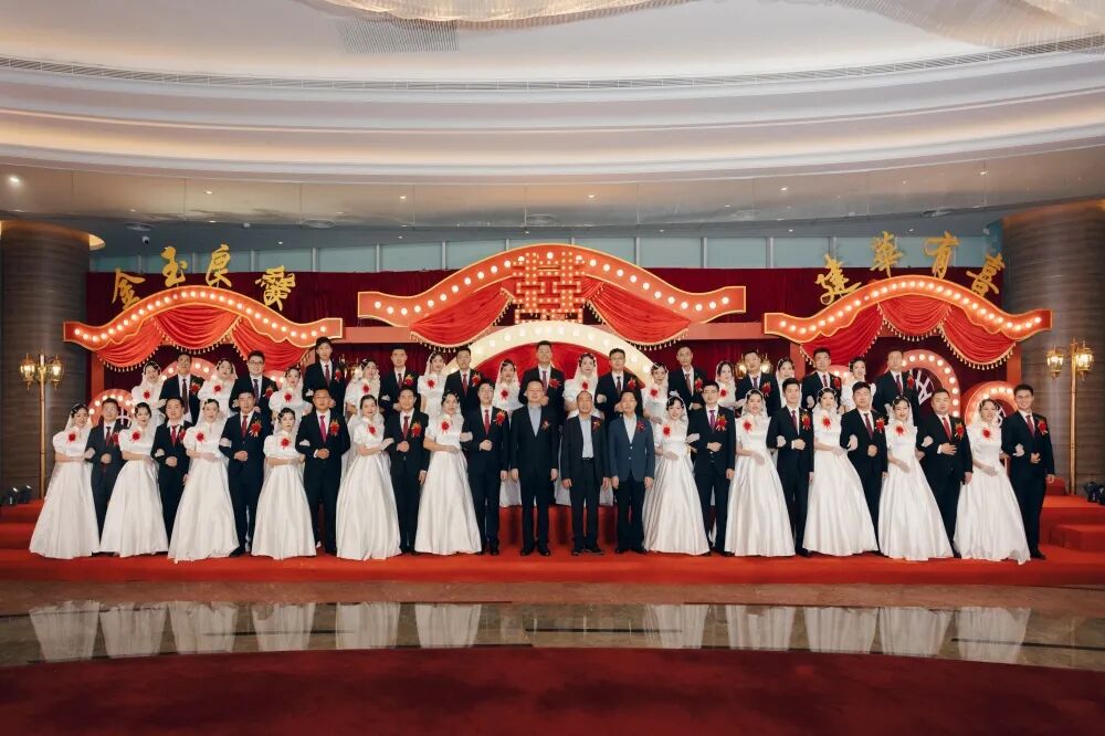 最后,全体新人和现场嘉宾共同合影,留住这温馨美好的时刻。至此,建华控股第十六届青年集体婚礼圆满礼成!