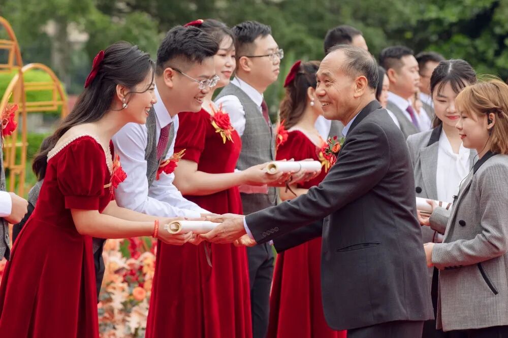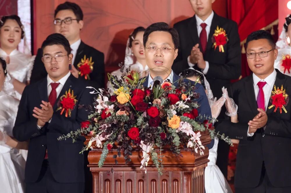 许景新先生亲自为新人们证婚,对全体新人喜结良缘表示祝贺,希望全体新人在人生旅程中互敬互爱、和睦相处,用心经营幸福家庭,用爱缔造美好未来!