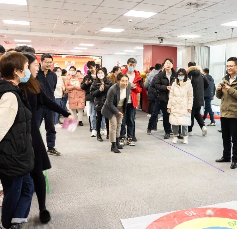分场地开启趣味十足的元宵游园之旅。套圈圈,光盘拔河,揪尾巴,沙包靶盘,蒙眼互打,企业文化快答等趣味活动,大家每完成一项游戏挑战,可领取本次游园活动精美奖品。趣味游园活动不仅营造了欢快热烈的节日氛围,也极大地帮助员工们放松了心情、提振了精气神。花式“闹”元宵,仪式感满满!