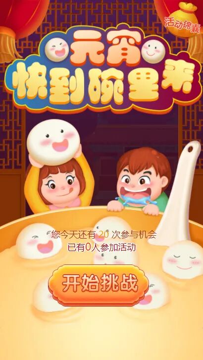 把行走的汤圆拖到碗里,不要被小朋友捞走哦。只要您达到220分,即可获得一次抽奖机会哦!每人有3次抽奖机会。